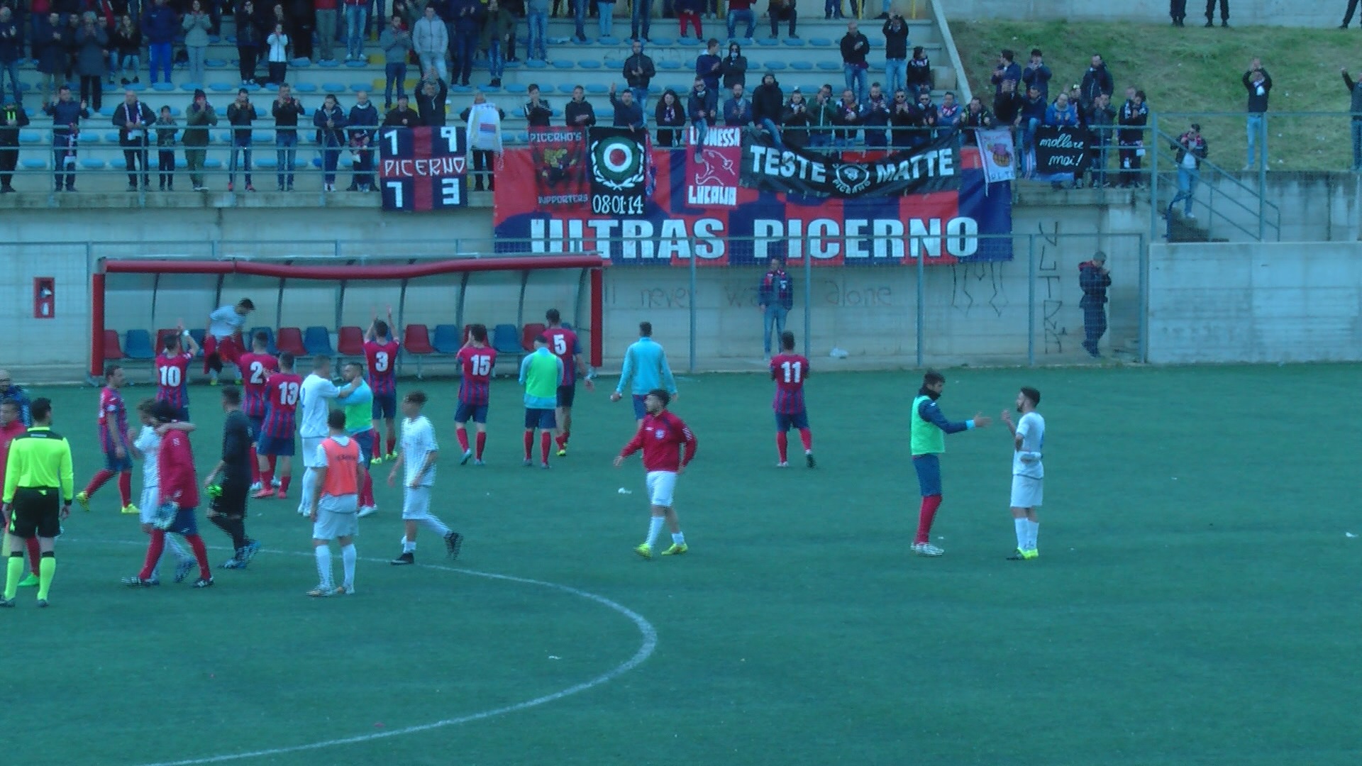 Nei minuti di recupero ultima occasione per il Picerno dal cross di Montuori, Gerardi si coordina bene ma calcia alto e si va alla chiusura dell’incontro con un deludente pareggio che allontana il sogno salvezza per i lucani.